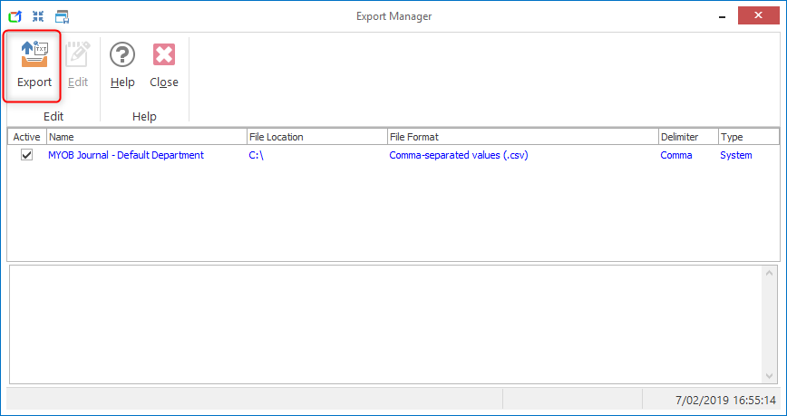 - From there the file is ready to be imported into MYOB, locate it on the disk using the file location as indicated above. From the example above the file path would be "C:\Exports\MYOB Journal.csv", from there you will need to follow the instructions provided by MYOB to import the file to your system.